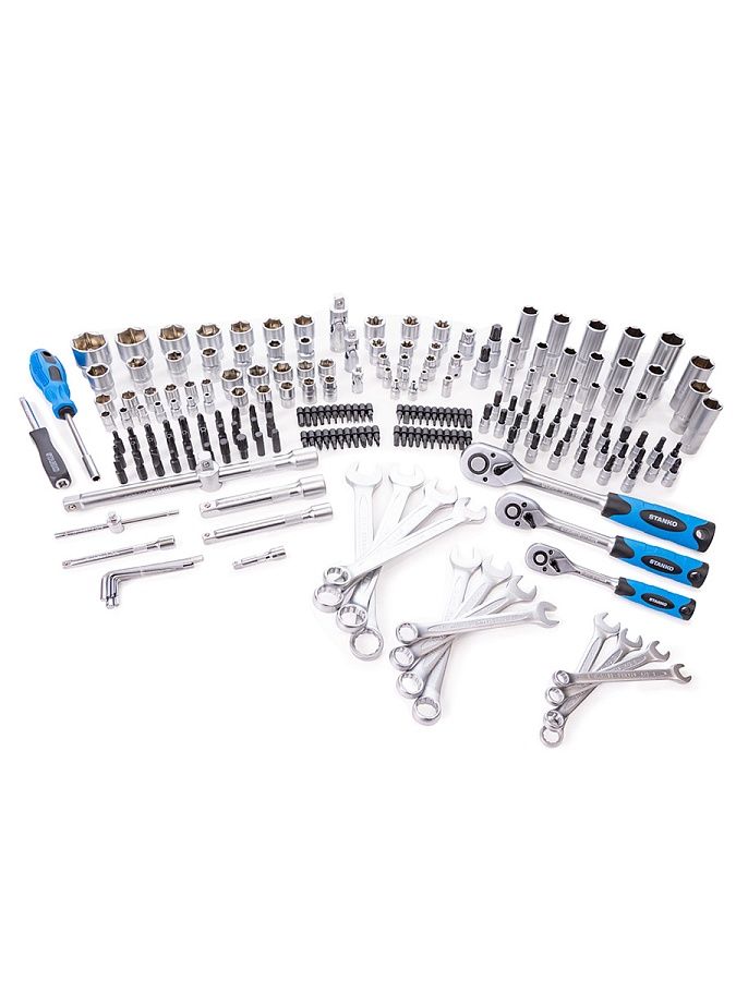 Универсальный набор инструментов 216 предметов от бренда STANKO в первую очередь предназначен для монтажных, демонтажных и ремонтных работ. Может применяться как в автосервисах, мастерских и СТО, так и в гараже или дома для бытового использования.
